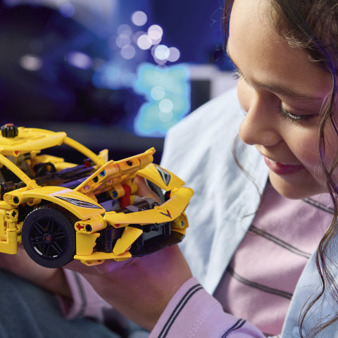 This set lets young builders assemble their own Corvette model before playing with the vehicle and exploring its functions.