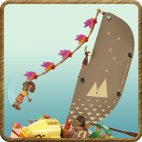 Includes a buildable double-hulled canoe toy with a textile sail, removable deck and under-deck living area, plus 4 LEGO® ǀ Disney movie characters and lots of details